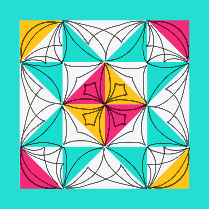 ➤ combining designs that glow, always continuously without stitching in the ditch